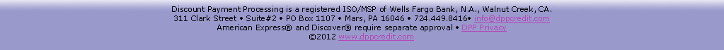 For more information about the Discount Payment Processing commitment to protecting consumer privacy both online and offline, please call us at 1.724.449.8416.