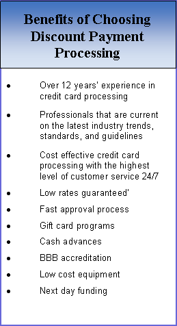 Discount Payment Processing partners with financial institutions to deliver cost effective credit card processing services and equipment.